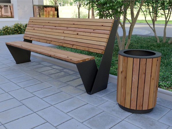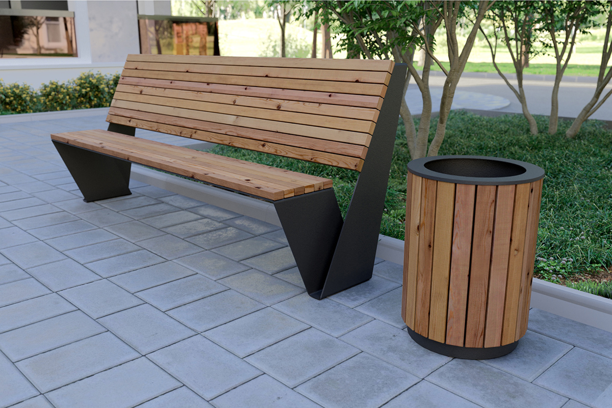 Деревянные элементы обработаны в несколько слоев масла для защиты от попадания влаги и сохранения структуры и цвета дерева. Металлические элементы окрашены порошковой краской. Варианты цветового исполнения: черный серый и коричневый.