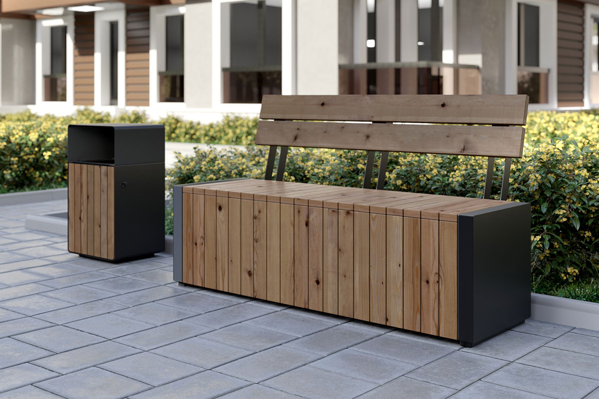 Универсальная коллекция уличной мебели не перегружена массивными конструкциями и дополнительными элементами. Поэтому она смотрится легкой и современной. Подойдет для организации зоны отдыха жилых комплексов и скверов при любых стилистических решениях.